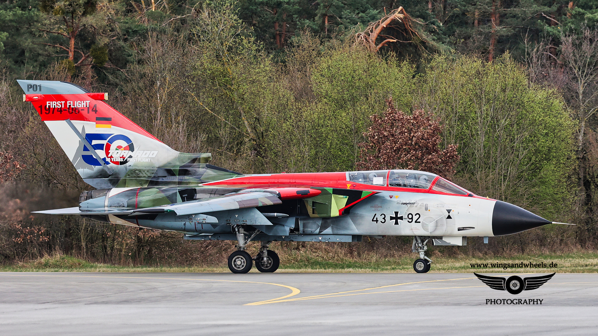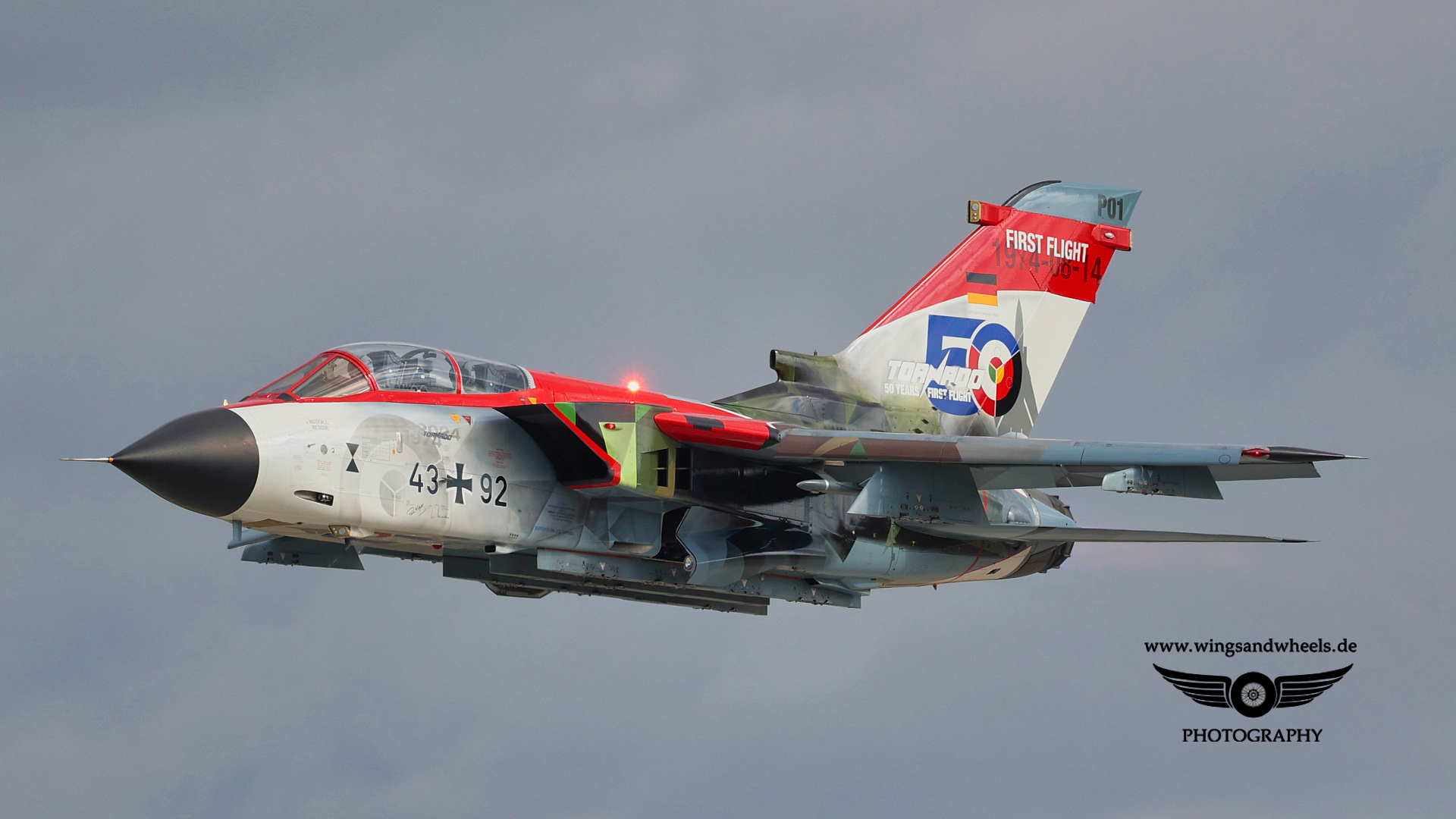 Am 14.08.1974 fand der Erstflug des Panavia Tornado statt. Aus diesem Grund erhielt der Tornado mit der Kennung 43+92 zum 50-jährigen Jubiläum eine Sonderlackierung. Die Auslieferung der Maschine fand am 25.03.2024 in Manching statt.
