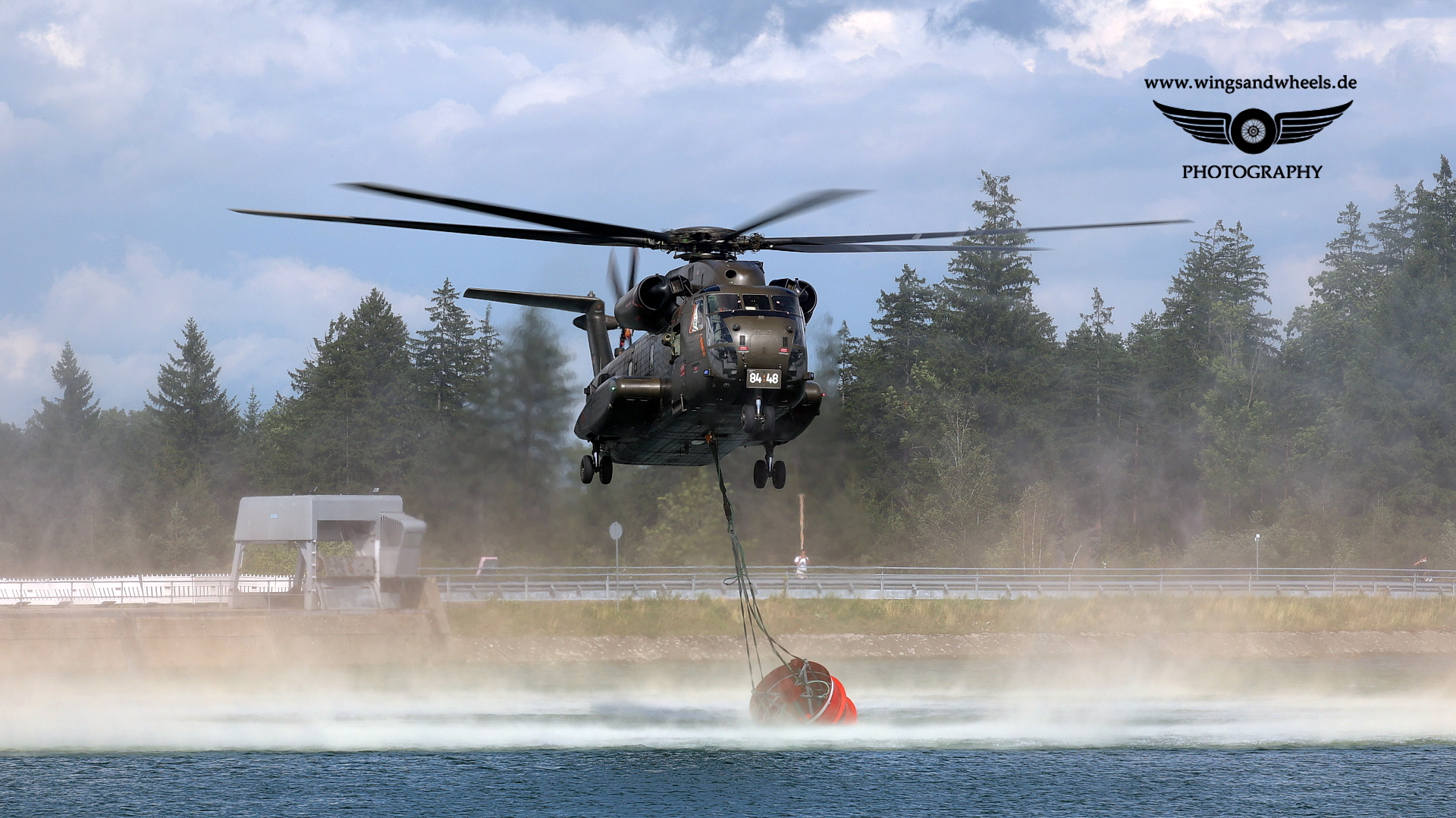 Das Hubschraubergeschwader 64 aus Laupheim trainierte auch in diesem Jahr auf dem Standortübungsplatz Lechfeld die Brandbekämpfung. Mit CH-53 Transporthubschraubern wurde das Löschen aus der Luft als auch des Befüllen von Wasserbehältern am Boden geübt. Auch die Landespolizei aus Nordrhein-Westfahlen, Baden-Württemberg und Bayern waren mit Eurocopter EC-135 und EC-145 an der Übung beteiligt. Als Entnahmestellen wurden die Lechstaustufe 20 und ein Baggersee angeflogen.